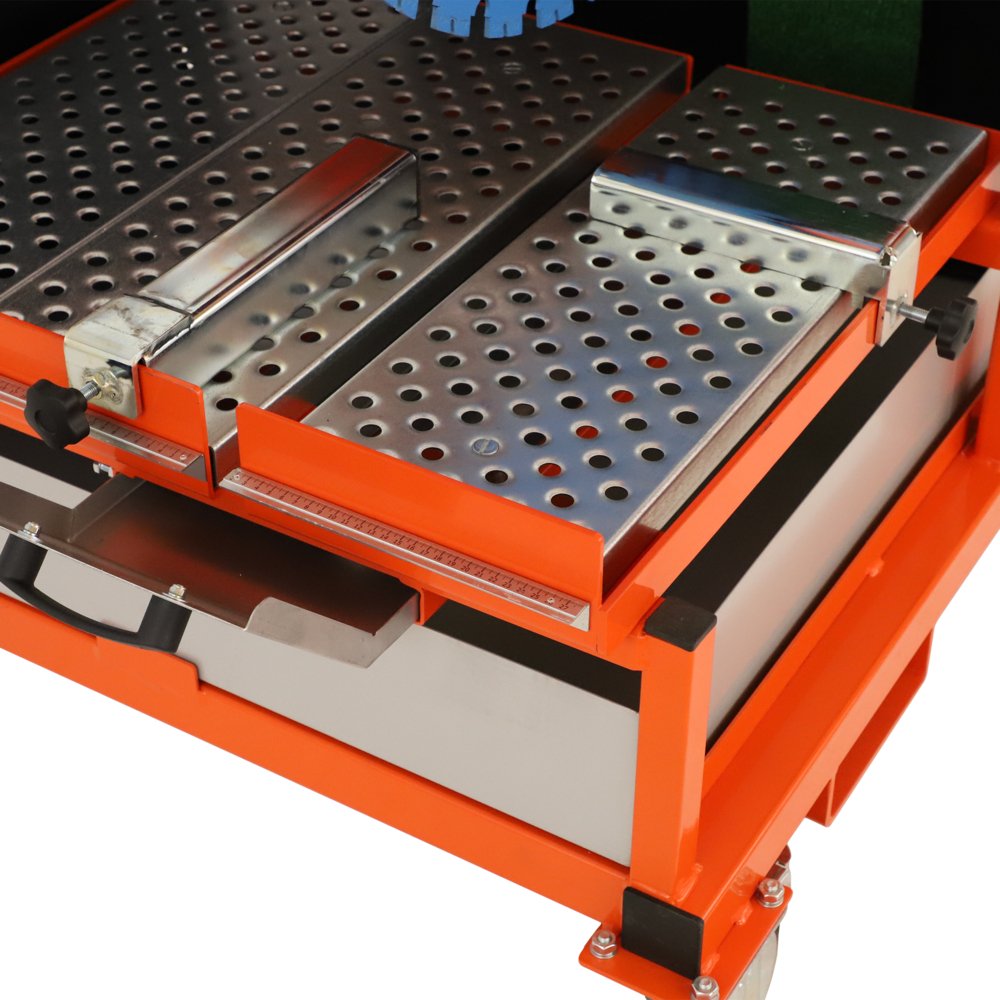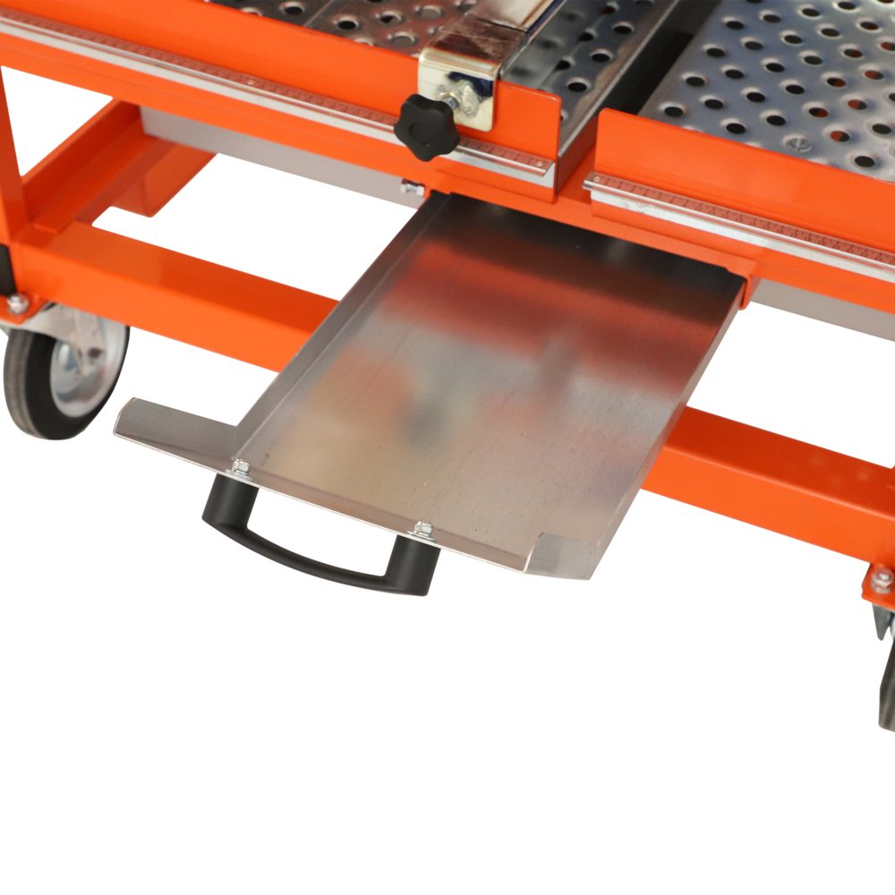 - Robustní rám se 4 pojezdovými koly usnadňuje přepravu po staveništi.