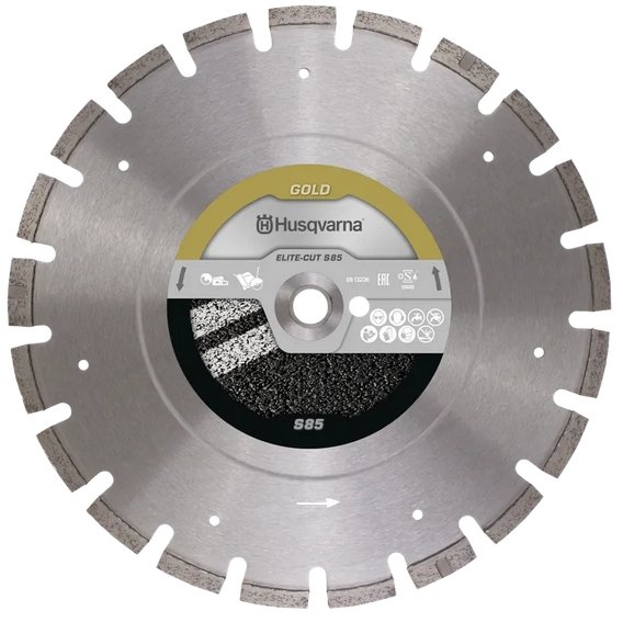 Důmyslné ukazatele a značky na kotouči pomáhají zlepšit bezpečnost a produktivitu obsluhy. Podávají okamžitý a jasný přehled o opotřebení kotouče, hloubce řezu, boční vůli, směru otáčení a zamýšleném použití.