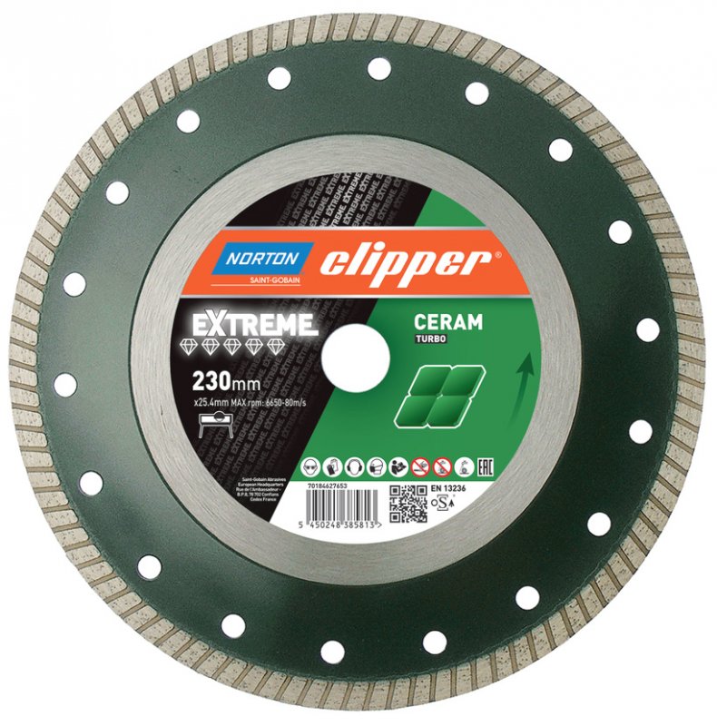 Diamantový kotouč na obklady a dlažbu NORTON Clipper EXTREME CERAM TURBO 230 x 25,40 mm