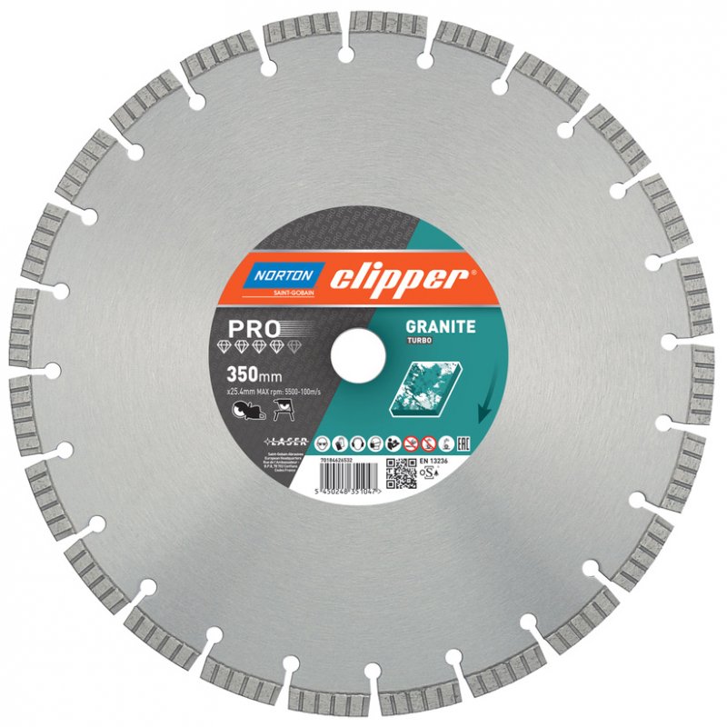 Diamantový kotouč na žulu a kámen NORTON Clipper PRO GRANITE TURBO 350 x 25,40 mm