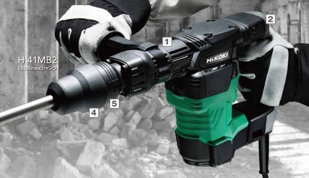 Elektrické bourací kladivo HITACHI H41MB je spolehlivé a výkonné kladivo lehčí třídy pro sekání a bourání menšího objemu materiálu. Kladivo je vybaveno přídavným madlem a částečně odpruženou rukojetí.