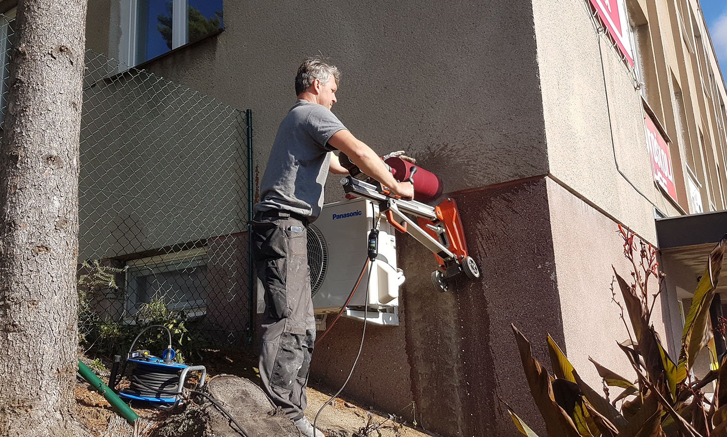 Jádrovou vrtačku půjčujeme samostatně nebo s kvalitní diamantovou korunkou různých průměrů. Zapůjčení jádrové korunky je účtováno dle opotřebení. Ke stroji půjčujeme nádrž pro vodní zkrápění a sadu příslušentsví pro ukotvení stojanu a upnutí korunek.