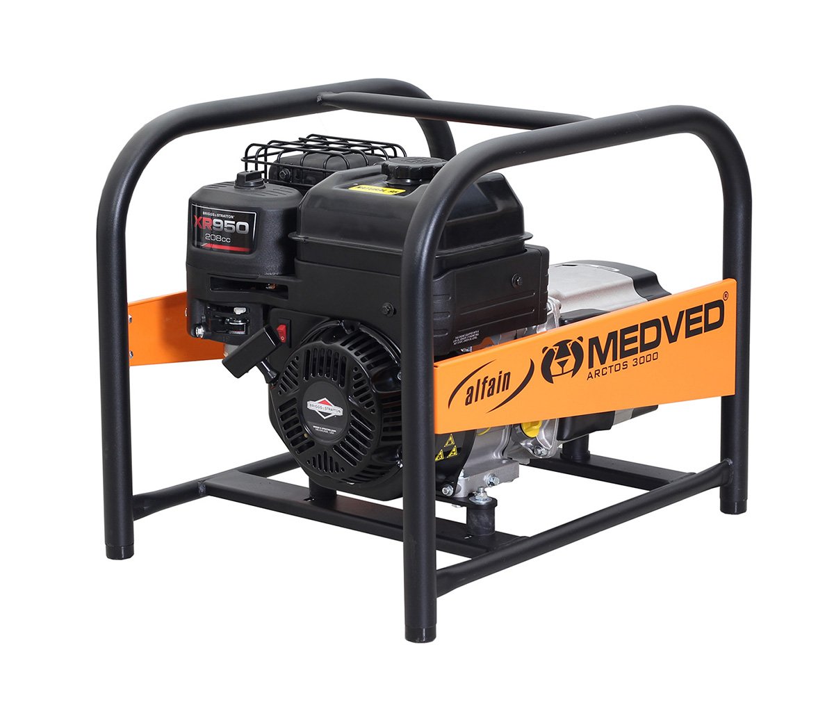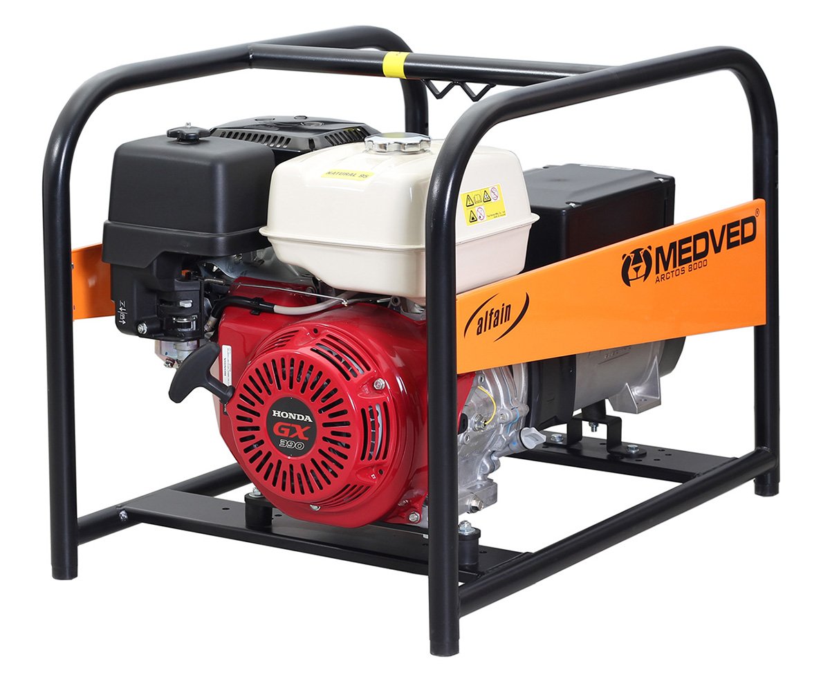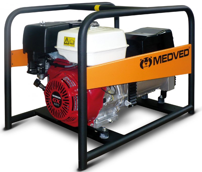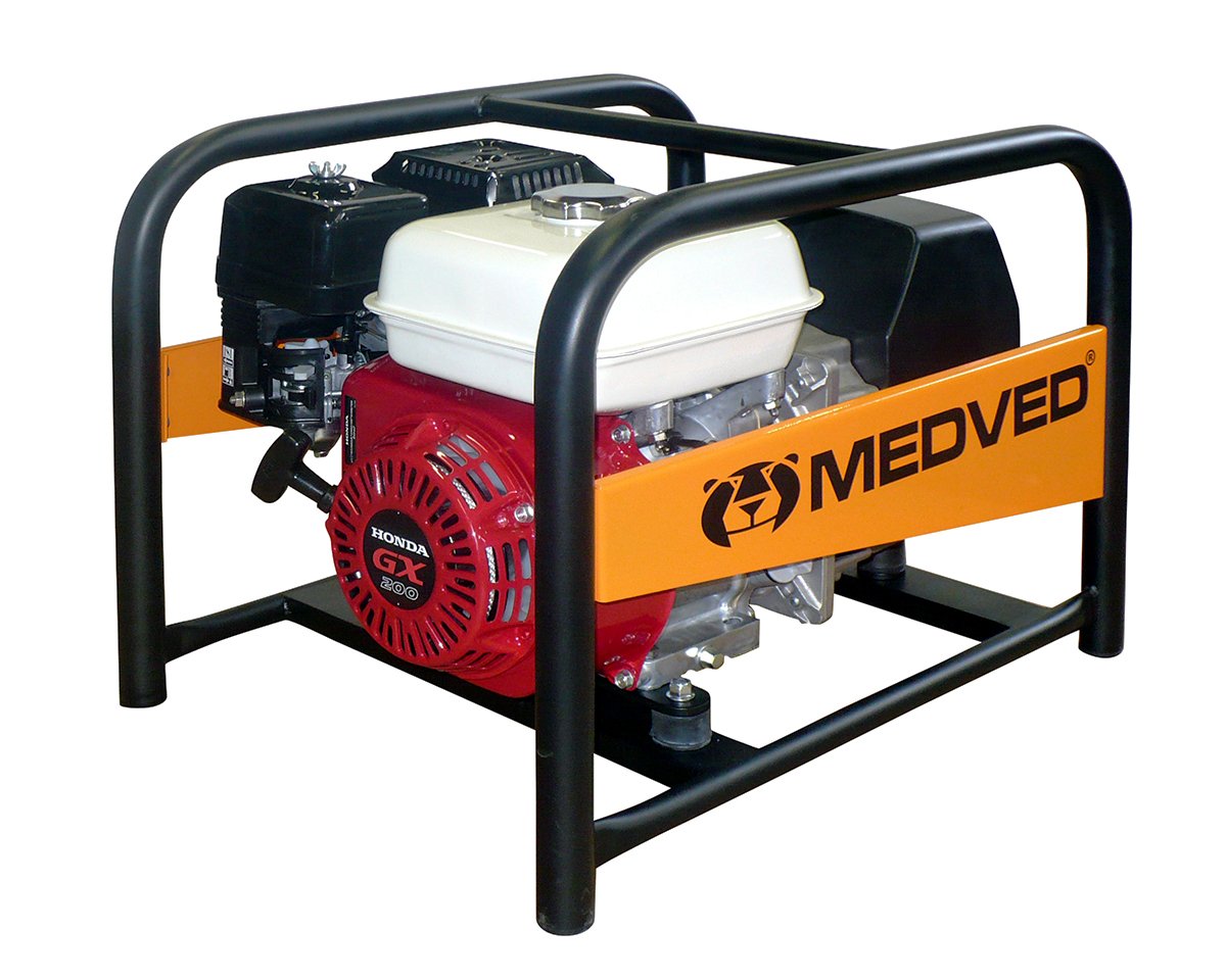 Elektrocentrála MEDVED s výstupem 230V / 50Hz. Elektrocentrály jsou poháněny profesionálním jednoválcovým motorem HONDA nebo Vanguard. Výkon motoru vždy odpovídá výkonu alternátoru. Elektrocentrály lze dodat ve verzi s elektrostartem.