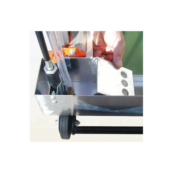 Sklápěci nohy poskytují dostatek stability i snadnou manipulaci. Stále vodorovná poloha krytu kotouče a robustní pojezdový pracovní stůl umožňuje bezpečné a snadné řezání široké škály stavebních materiálů.