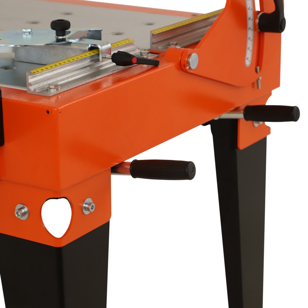 Pevná konstrukce a silné vodící tyče zajišťují přesný precizní řez i pod úhlem. Pila vhodná pro přesné řezání kamenických rohů u silnostěných obkladů. Zvedací řezná hlava umožňuje přizpůsobení hloubky řezu a drážkování materiálu.