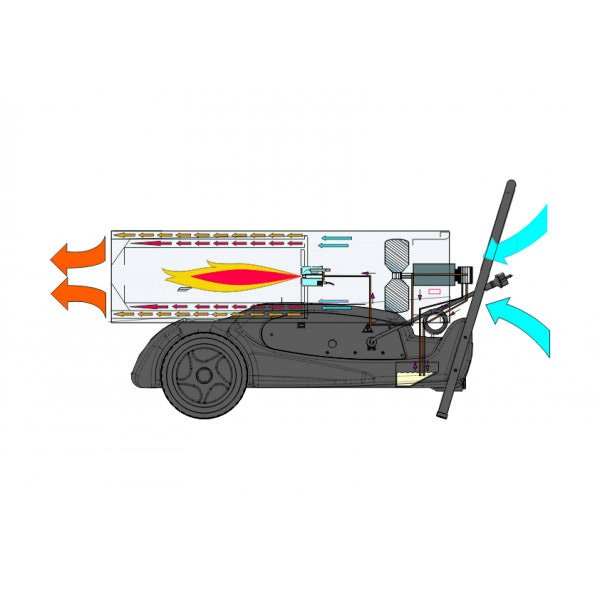 Naftové topidlo je vybaveno podávacím čerpadlem a elektronicky řízeným spalováním, které zajišťuje vyšší efektivitu spalování a tím více tepla při stejné spotřebě paliva. Naftová topidla s přímým spalováním vytváří zplodiny, proto se hodí spíše do dobře větraných prostorů. Naftová topidla jsou doplněna přepravními kolečky.
