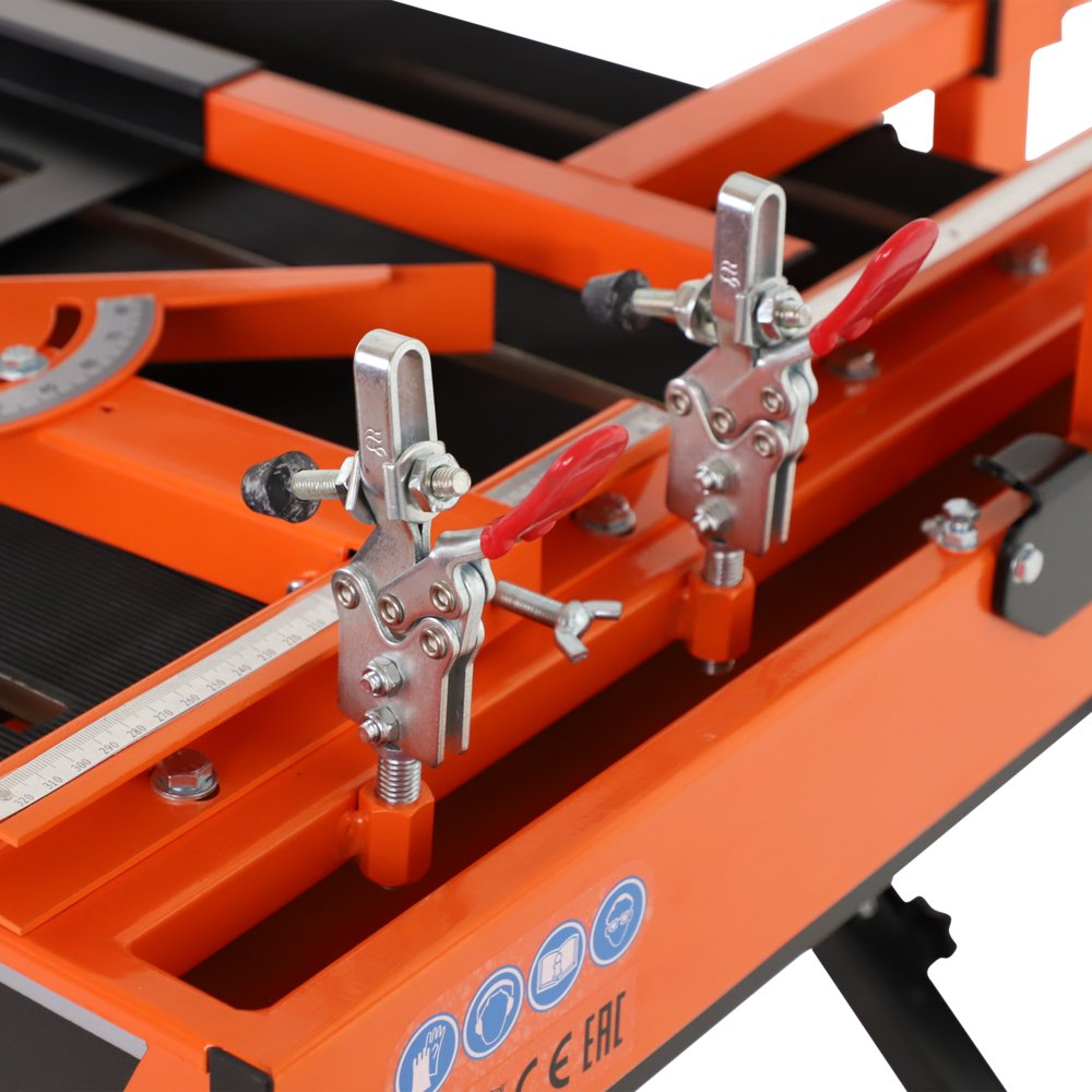 • Pogumovaný stůl pro lepší uchycení materiálu.