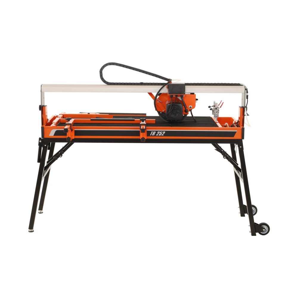 Obkladačská pila NORTON Clipper TR 252 je robustní a vysoce kvalitní stroj doplňující kompletní nabídku řady obkladačských pil. Maximální délka řezání dosahuje 1.200 mm. Tuhý ocelový rám umožňuje velmi přesné řezání i pod úhlem nebo drážkování materiálu. Pila je osazena výkonným motorem s výkonem 1.500 W.