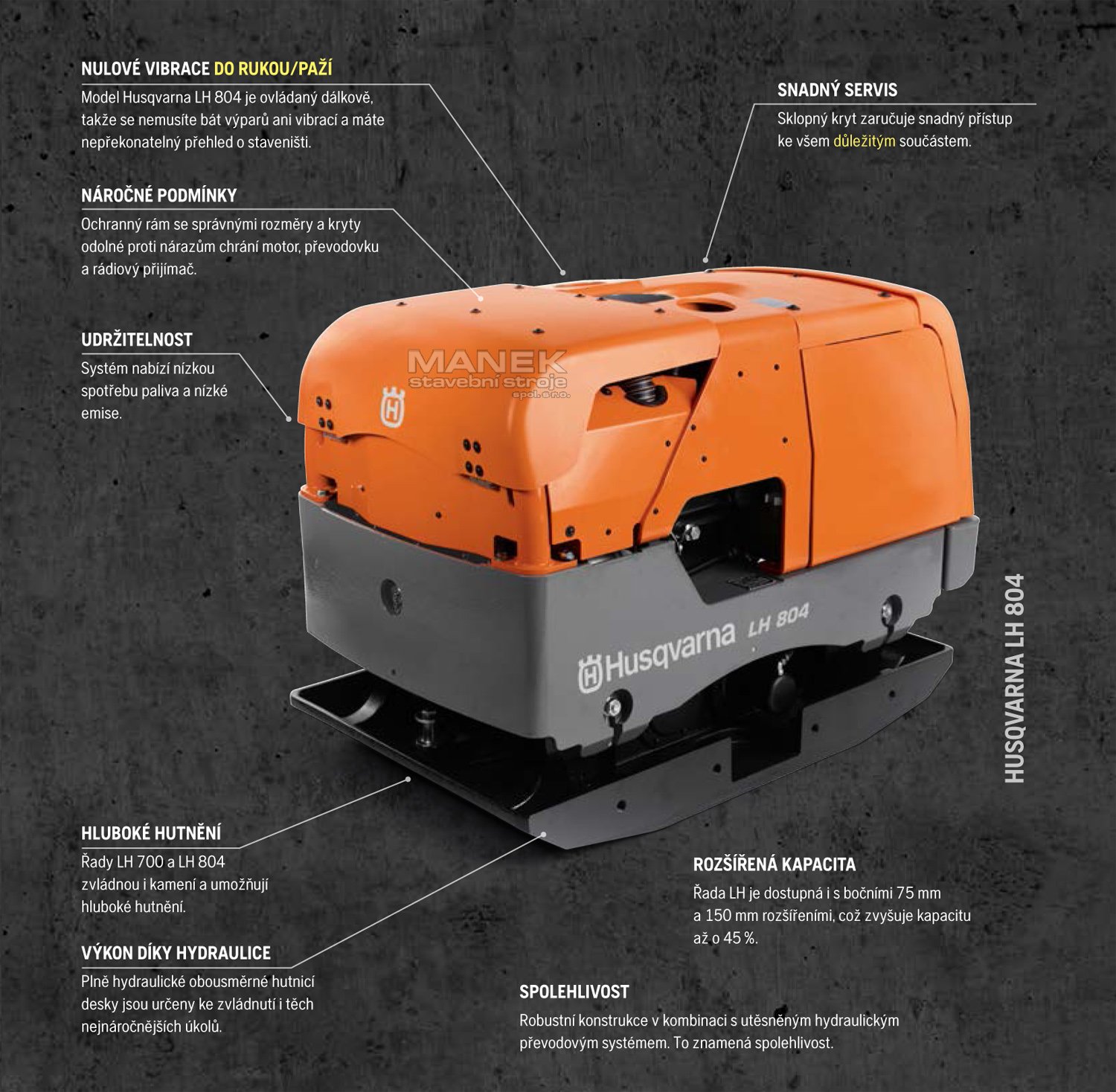 Plně hydraulická reverzní vibrační deska Husqvarna LH 804 je vhodná pro hutnění ploch velkého rozsahu.
