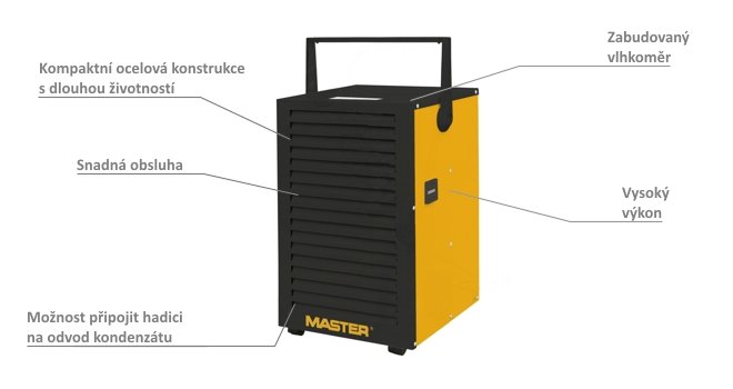 Poloprofesionální odvlhčovač vzduchu MASTER DH 732 P je vhodný pro vysoušení menších prostorů.