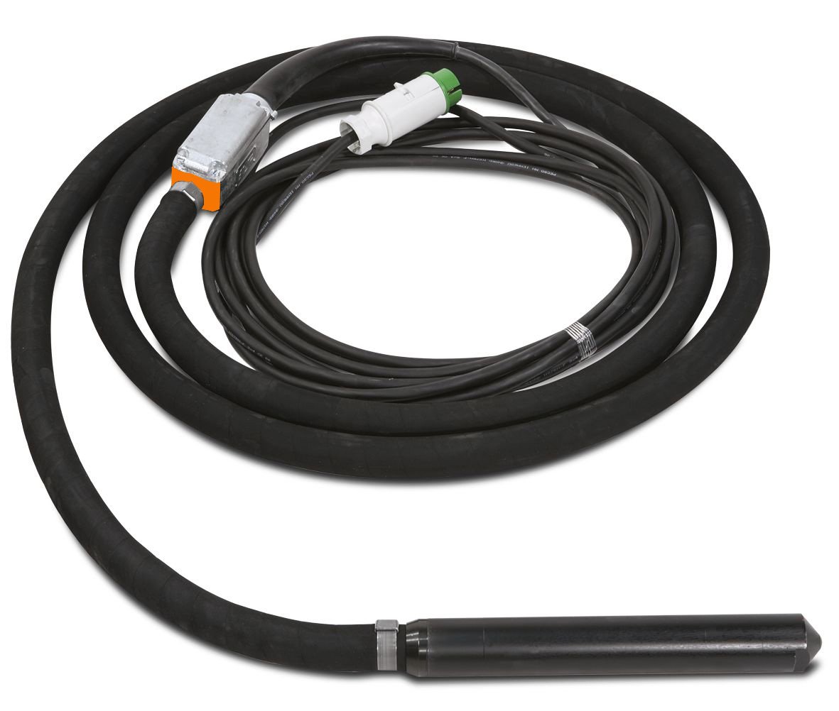 Ponorný vibrátor se skládá z elektrické pohonné jednotky, ohebné hřídele se rotační strunou a vibrační hlavice.