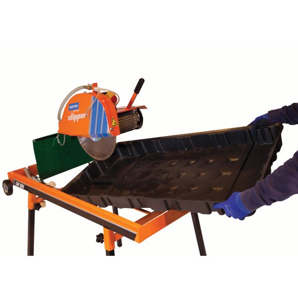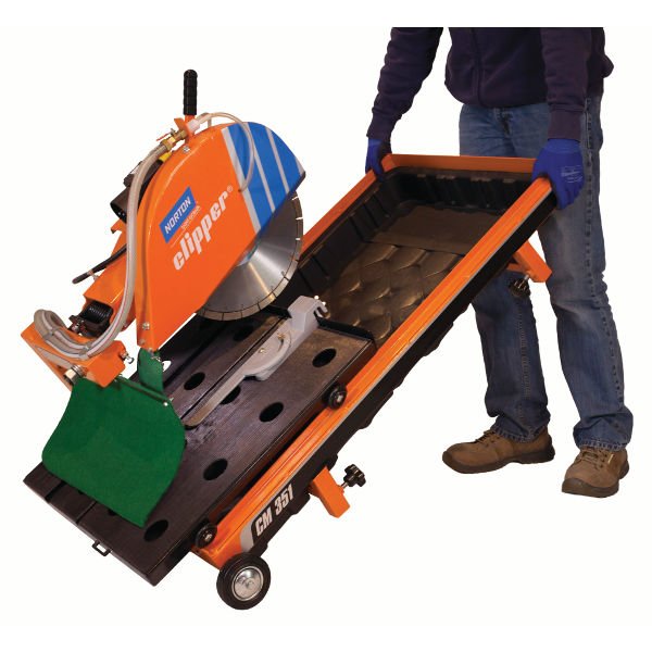 Profesionální stolová pila NORTON Clipper CM 352 je lehká přenosná kamenická pila s možností naklápění řezné hlavy a s odnímatelnou vodní nádrží. Sklápěcí nohy výrazně ulehčují manipulaci, nakládání a transport. Je ideální pro bezpečné a snadné řezání keramických dlaždic, zámkové dlažby a podobných stavebních materiálů.