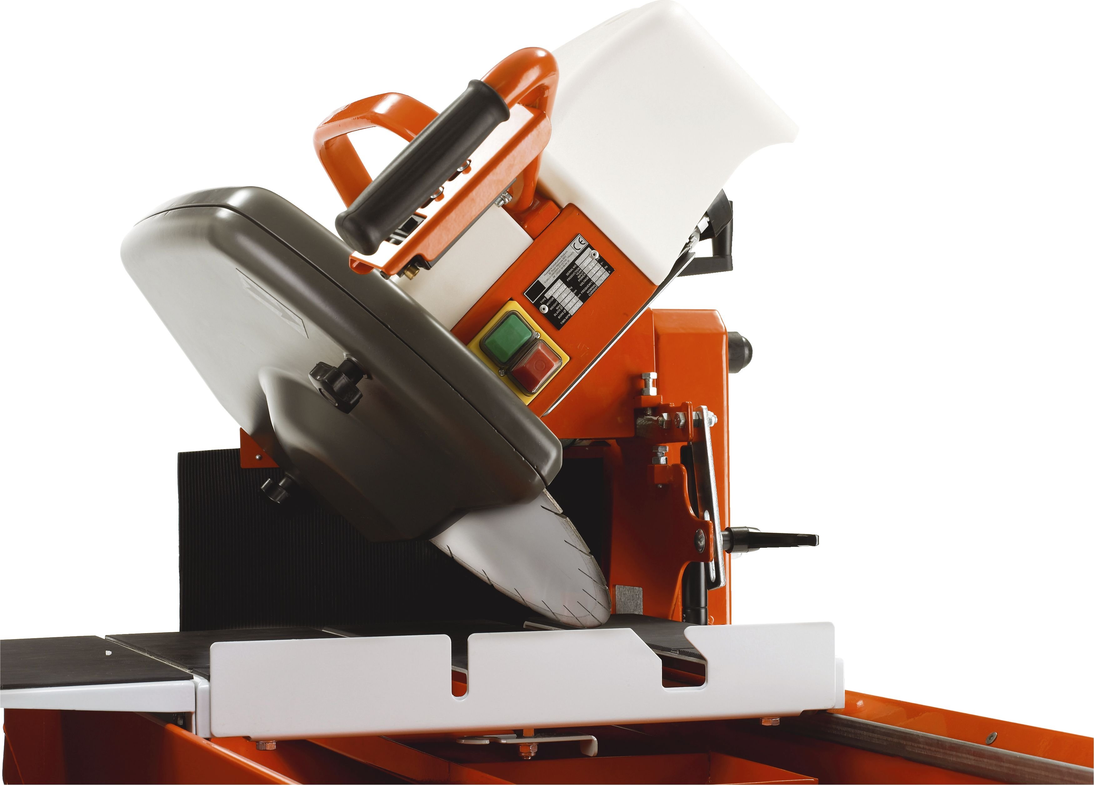 Stolová pila HUSQVARNA TS 400 F (230V) s nastavitelnou hlavou pro řezání pod úhlem. Průměr kotouče 400mm.