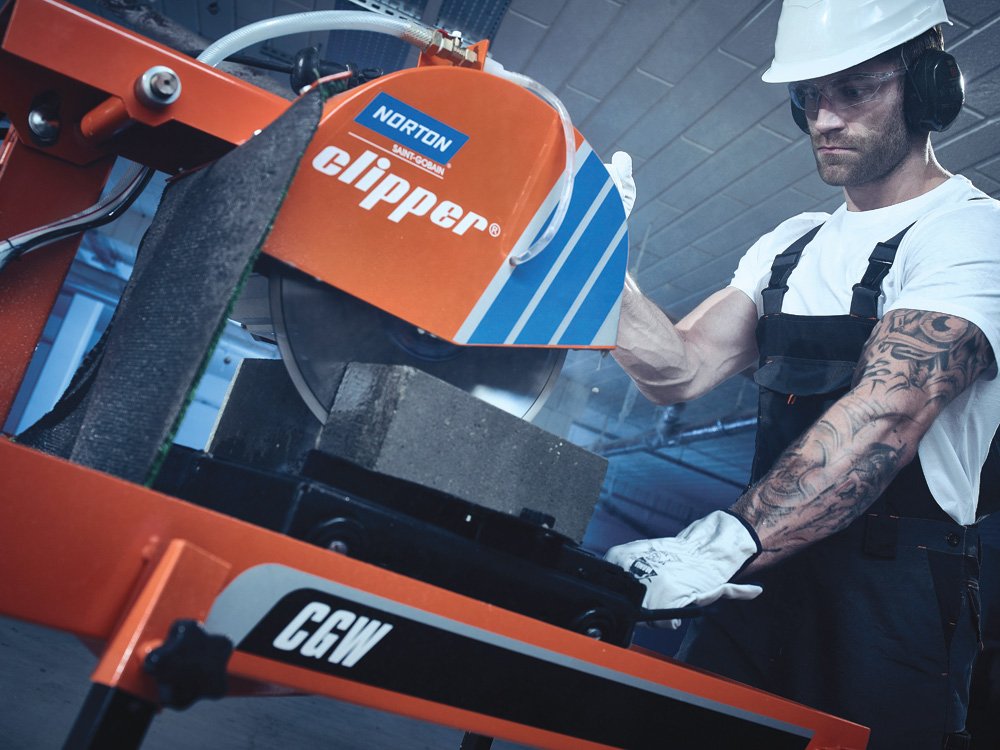 Stolová pila na zámkovou dlažbu NORTON Clipper CFW je spolehlivá a výkonná pila pro řezání betonové zámkové dlažby a stavebních materiálů. Pila je vybavena oběhovým čerpadlem pro snížení prašnosti a skrápění řezu.